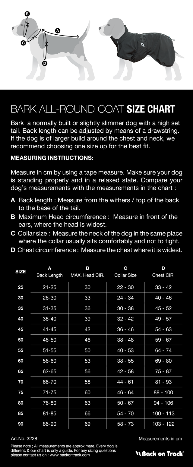 Sisäpuoli on vuorattu Iontex®-teknologialla, joka voi stimuloida verenkiertoa ja auttaa koiraa ylläpitämään optimaalista ruumiinlämpöä sekä pitämään lihakset notkeina kaikissa sääolosuhteissa. “Bark” on suunniteltu siten, että Back on Trackin koirapaitoja (esim. Cassie ja Eddie) voidaan käyttää sen alla lisälämmittävänä kerroksena.