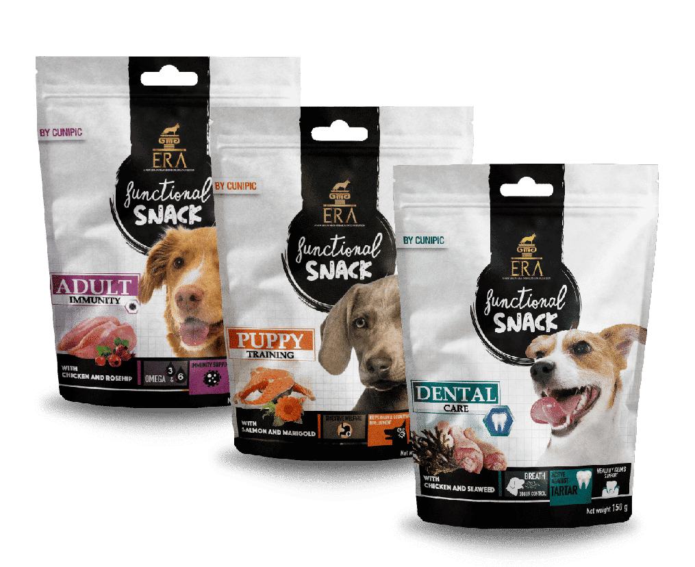 ERA Functional Snack -herkut ovat laadukkaita, puolikosteita ja viljattomia makupaloja, jotka on suunniteltu tukemaan koiran kokonaisvaltaista hyvinvointia eri elämänvaiheissa.