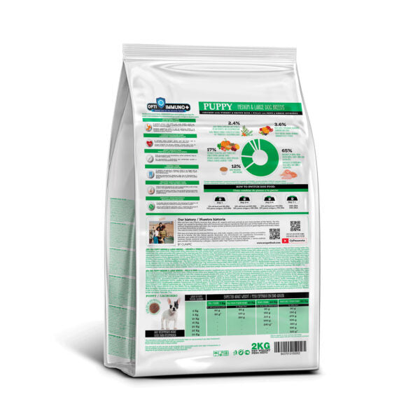 Täysravinto keskikokoisten rotujen koiranpennuille, joiden aikuispaino on 10-25kg sekä imettäville emoille. Runsaasti eläinproteiinia, tuoretta lihaa ensimmäisenä raaka-aineena ja huolella valittu koostumus tukemaan kasvua, ruoansulatusta ja vastustuskykyä.