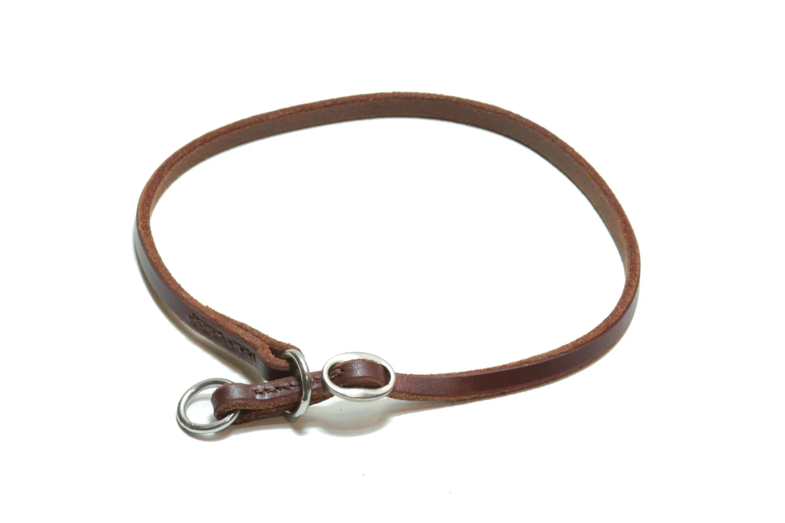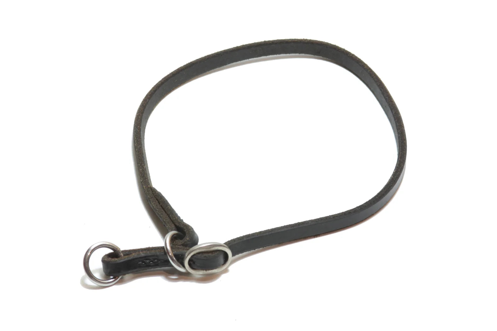 Nahkainen 8mm leveä kaulain näyttelykäyttöön. Kaulain varustettu kahdella renkaalla sekä säädettävällä stopparilla.