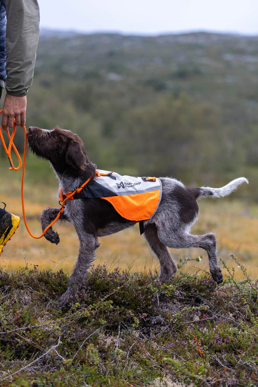 Kirkas oranssi väri ja 3M™-heijastavat yksityiskohdat tekevät koirasta helposti havaittavan niin hämärässä, tiheässä kasvillisuudessa kuin avoimessa maastossa.