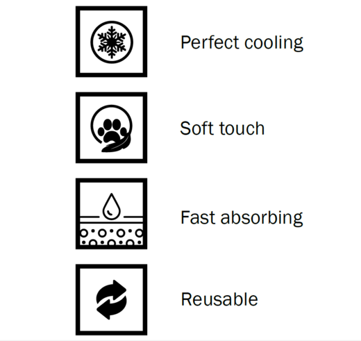 Kuivauksen lisäksi pyyhe soveltuu erinomaisesti viilentämiseen kuumina päivinä. Kevyesti kostutettuna se auttaa laskemaan kehon lämpöä miellyttävällä ja turvallisella tavalla – ilman kylmää shokkia. Tämä tekee siitä erityisen hyödyllisen kesänäyttelyissä, matkalla ja aktiivisissa harrastuksissa.